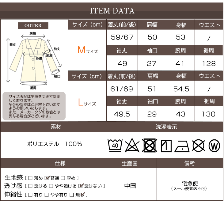 アウター(TH810109)REAL CUBE ノーカラーライトコート